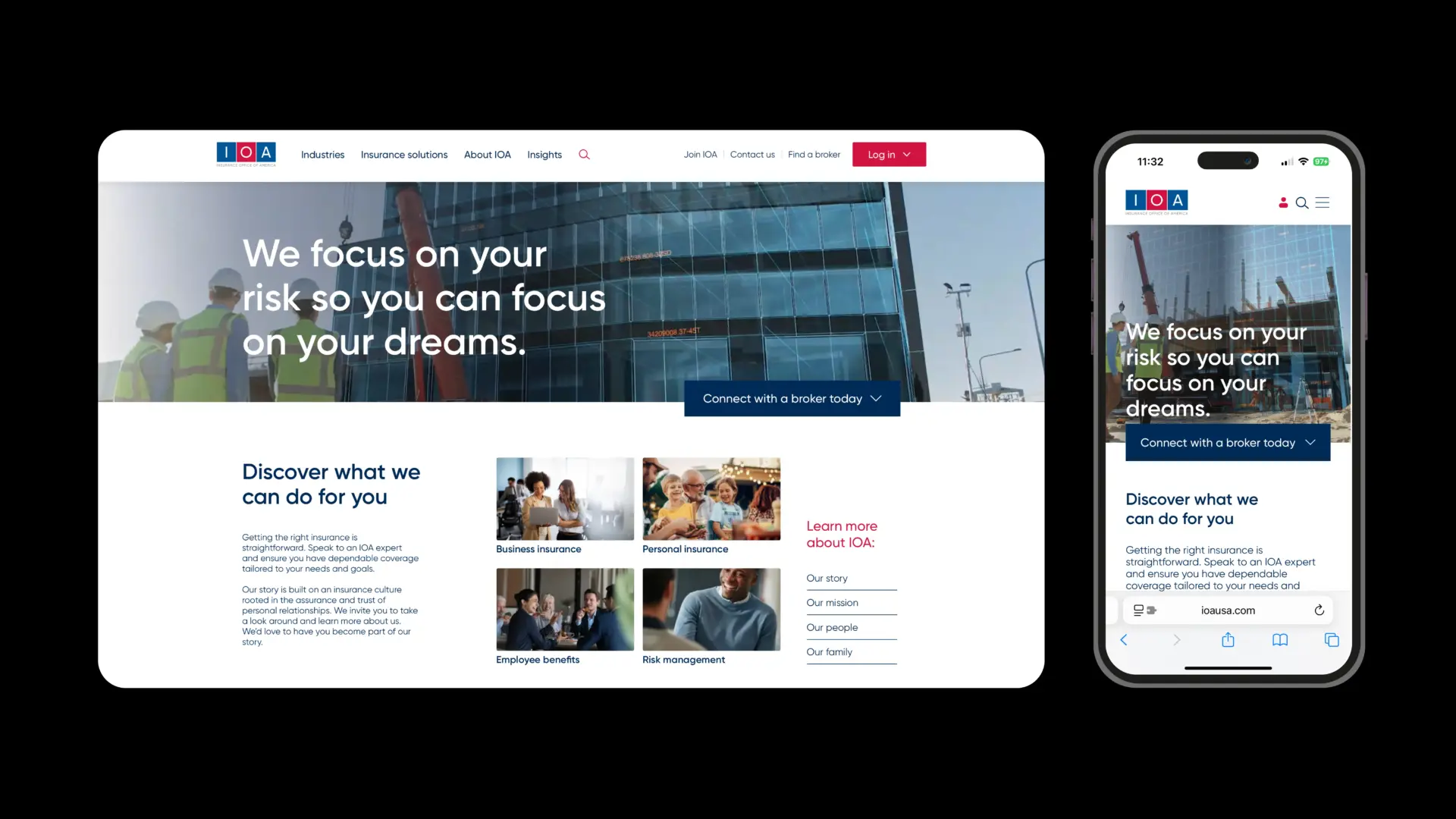 Insurance Office of America (IOA) is one of the largest privately held insurance agencies in the United States, known for its entrepreneurial culture and strong client relationships. IOA has a legacy of service excellence and a diverse portfolio of commercial, personal, and niche insurance products. It sought to showcase them in a modern, scalable digital presence that reflected its growth and commitment to client-centric service. This last ambition was central. IOA’s producers enjoy personal client relationships and insisted on a website that complemented and enhanced that crucial rapport.